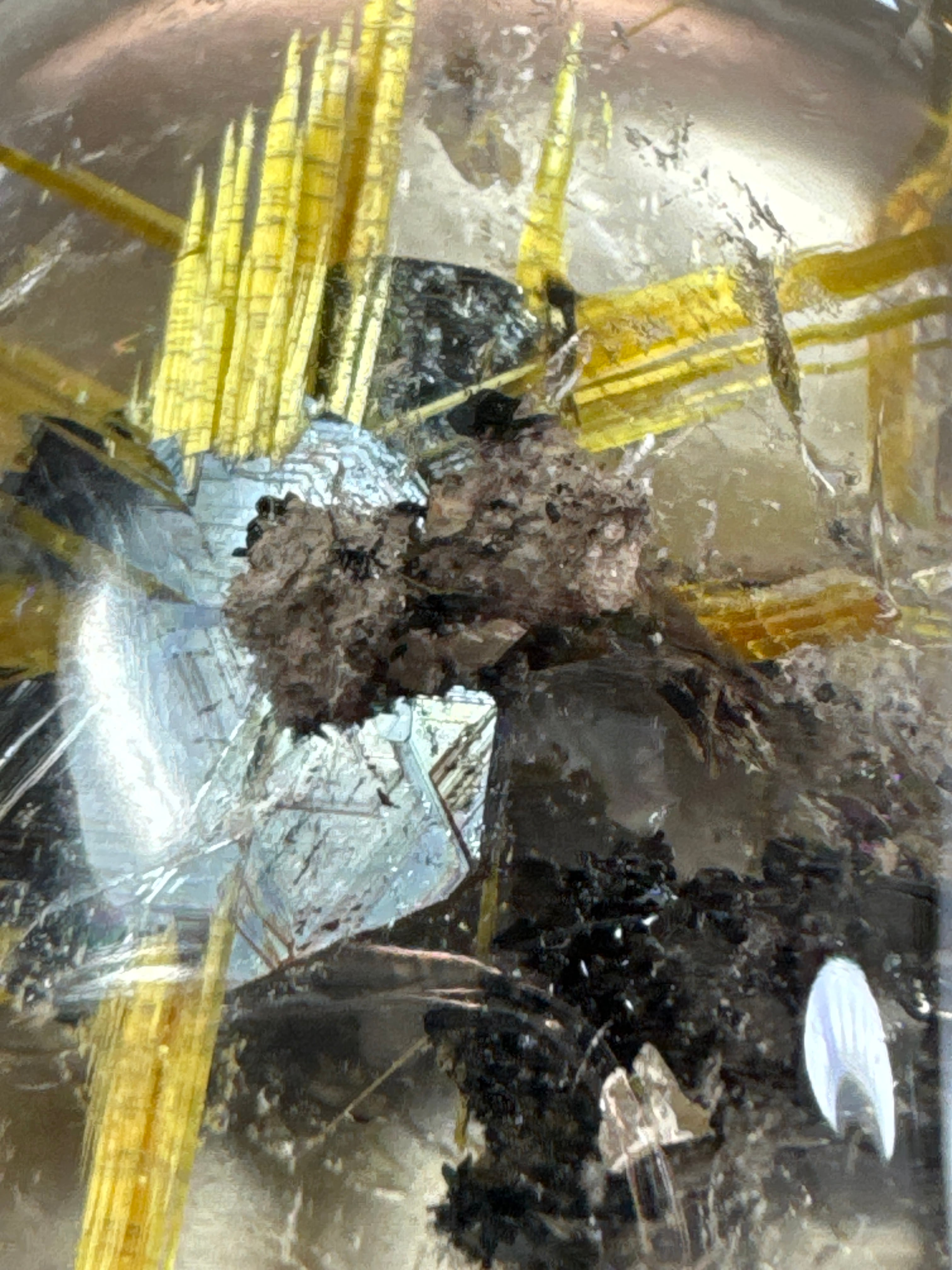 透明度が高い水晶の中で、のびのびと育まれた金色のルチル。