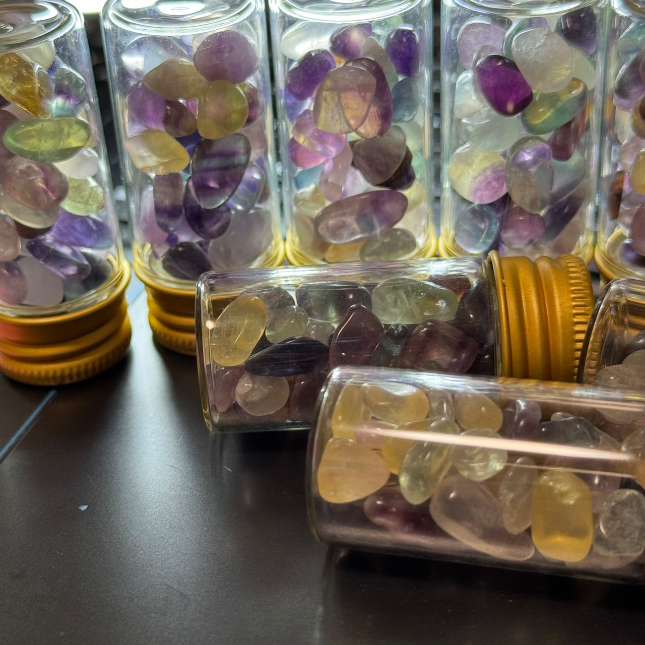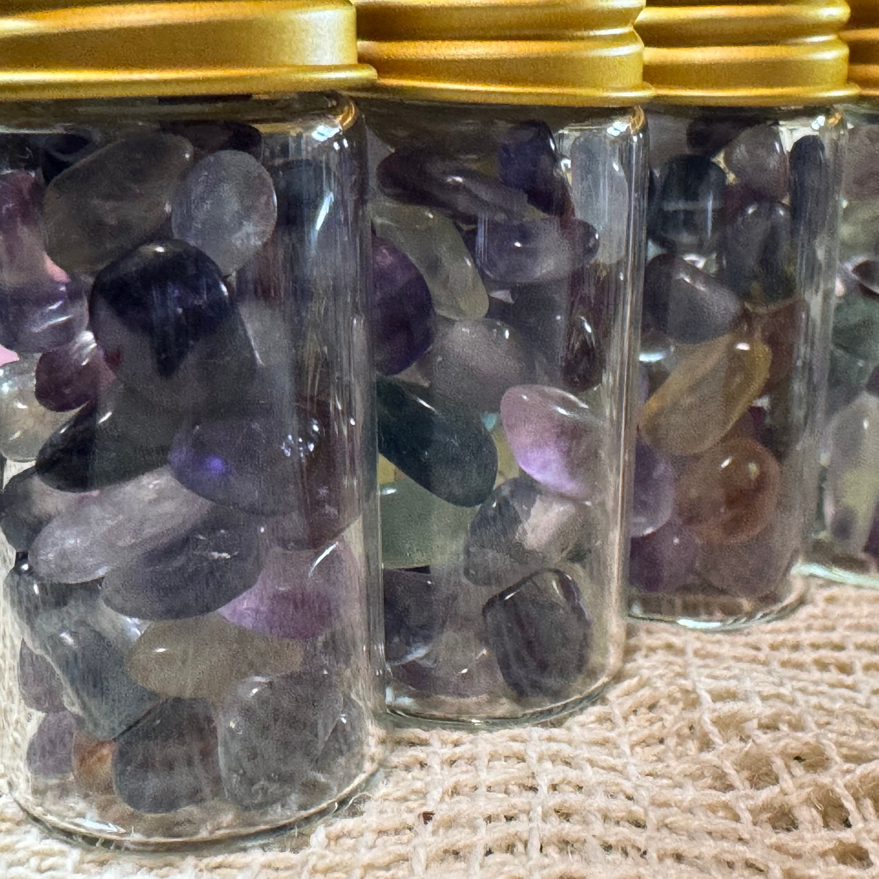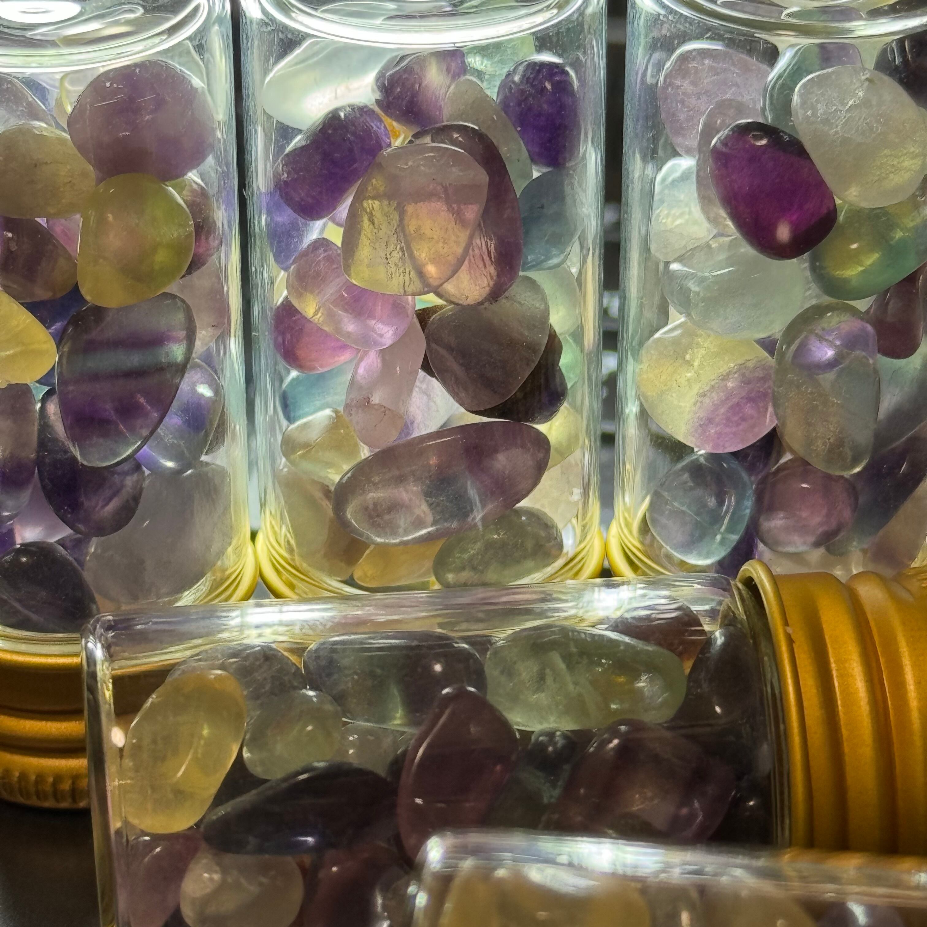 艶やかなゼリービーンズみたいな、レインボーフローライトの細石です。